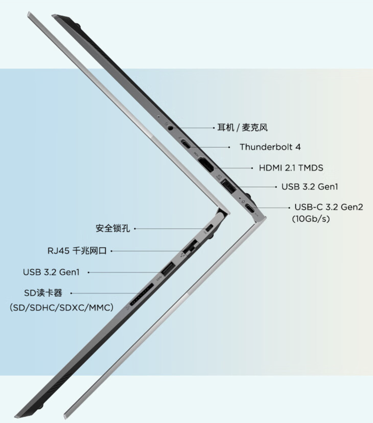接口方面,这款笔记本配备 1 个雷电 4 接口、1 个 USB-C 3.2 Gen 2 接口、2 个 USB-A 3.2 Gen 1 接口、1 个 HDMI 2.1 接口、1 个 RJ45 接口、1 个 SD 卡接口、1 个 3.5mm 音频接口。
