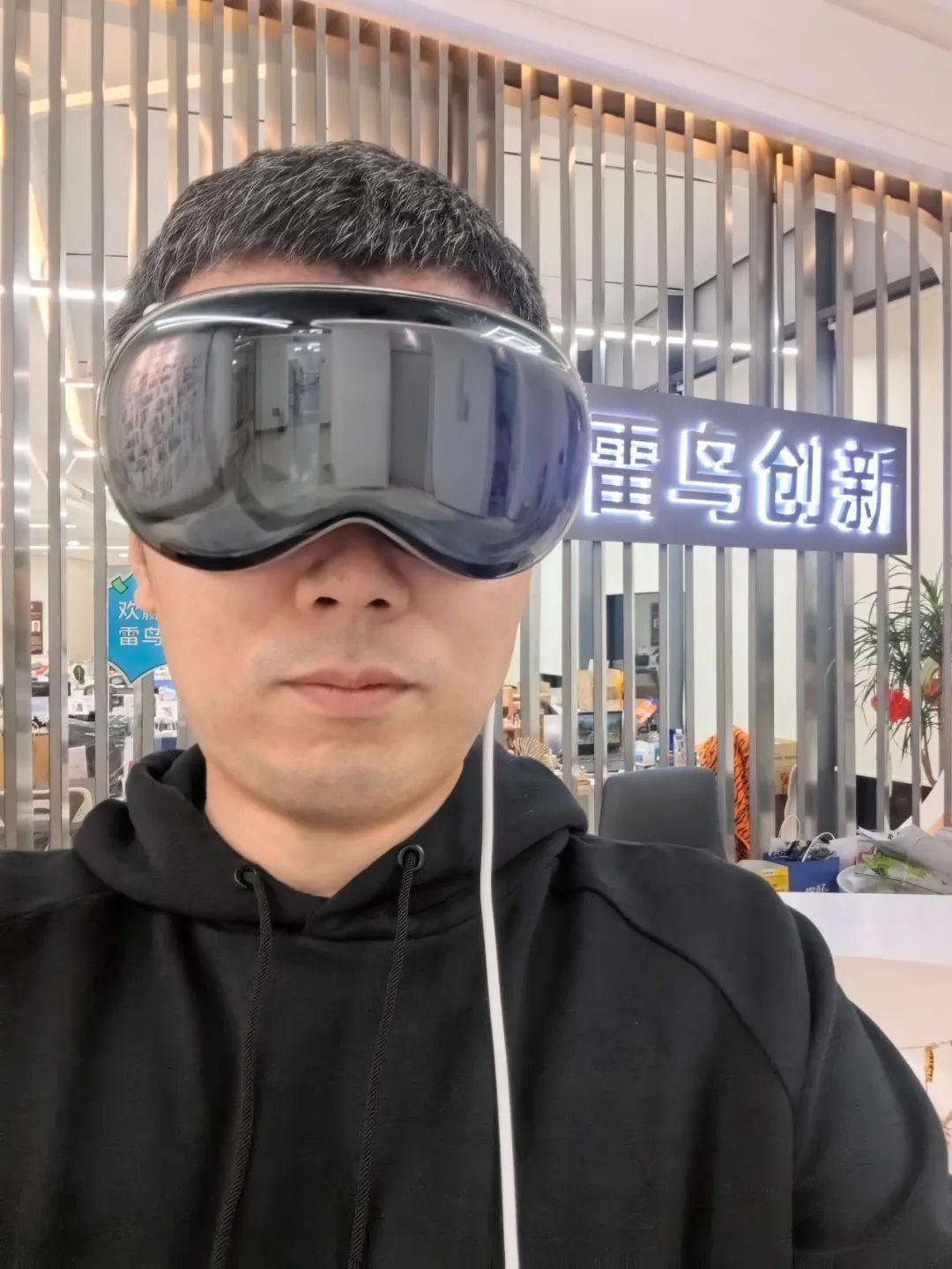 ▲李宏伟体验苹果Vision Pro (来源:雷鸟创新)