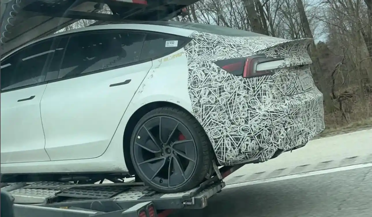备受瞩目的特斯拉Model 3高性能版最近再次被网友曝光。这次,这款神秘的新车被拍摄到停在一辆拖车上,后保险杠部分覆盖着伪装贴膜。尽管无法从照片中看到确切的细节,但这款车型的出现无疑再次引发了市场对其即将上市的猜测。