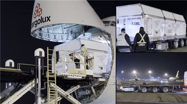 这台型号为Twinscan EXE:5000的光刻机着实是个庞然大物,运输过程中动用了250个货箱,总重约150吨,先用飞机从荷兰运到俄勒冈州波特兰,再用卡车分批次拉到工厂。