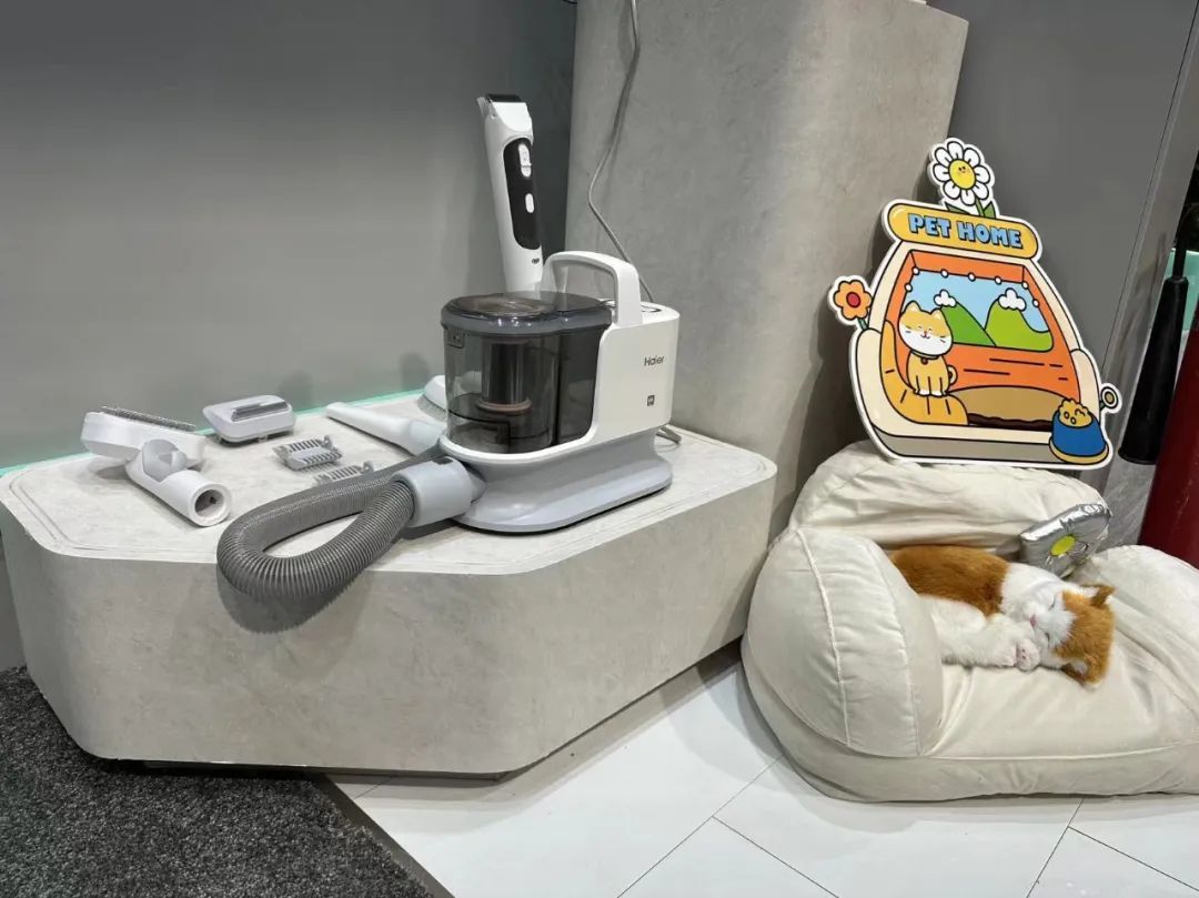 例如,在享有全球家电及消费电子风向标美誉的AWE2023上,就有不少宠物家电展出,展现出该品类蓬勃生机。例如,松下展出了宠物电器矩阵,包含自动猫砂盆、宠物烘干箱、宠物饮水机、智能喂食器、智能保鲜碗、逗猫玩具等产品。同时,还有一些品牌为养宠家庭提供清理解决方案,让人与宠物一同分享快乐健康的家庭生活。