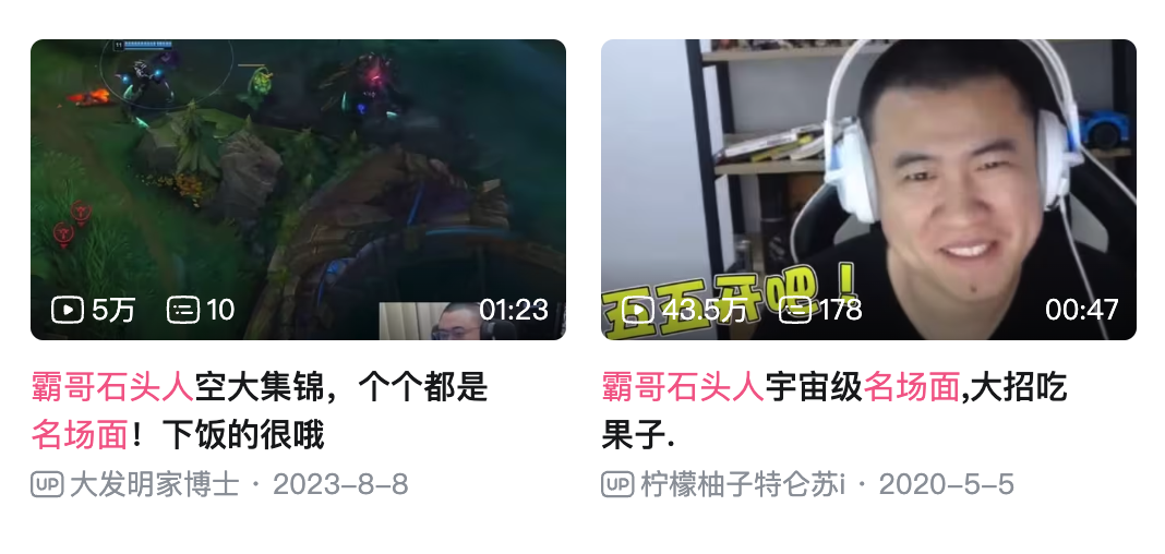 网上关于他的切片视频呢,数据好的,不可能是他操作秀,而是操作臭,比如石头人空大。噢,还有操作骚,什么石头人开大赶路吃果子。