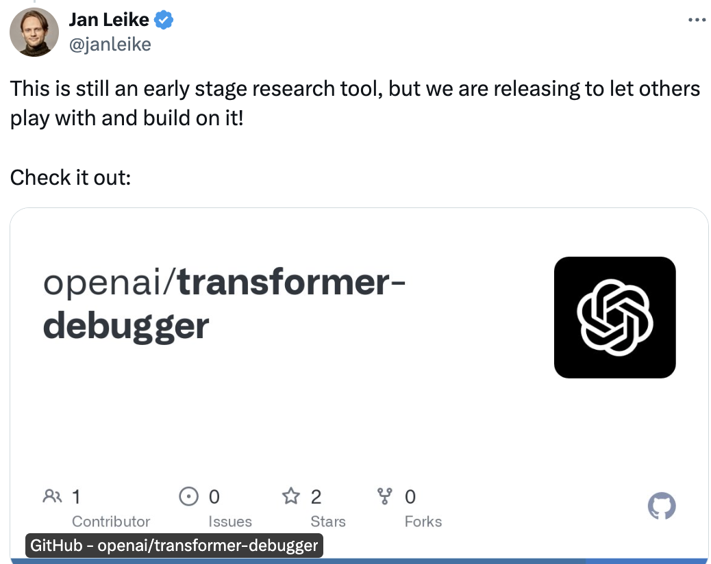 就在昨天,OpenAI超级对齐团队官宣要开源内部用的Transformer调试器(Transformer Debugger,TDB)。