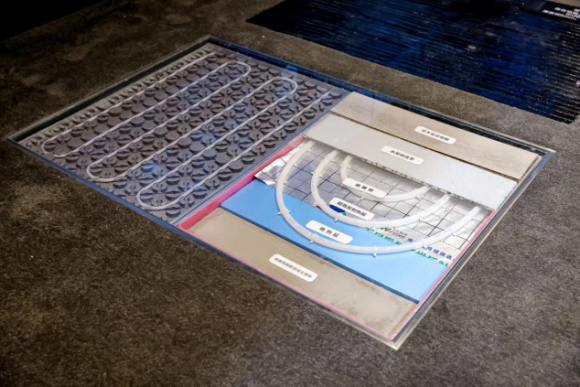 那么,为何这套系统被称为“隐形空调”呢?这是由于该系统主要以铺设在天花板和地板的顶地冷暖辐射系统来调温,以新风系统来调节全屋湿度、干净度和含氧量,仅针对部分房型和用户需求,会采用风盘来辅助快速达温,在达到设定值后再自动切换辐射系统、新风系统来保持温湿度的动态恒定。这对于用户来说,没有了空调出风口和内机,从外观上实现了“隐形”;同时,系统用水代替冷媒,不仅没有冷硬风感,更解决了传统空调的出风噪音问题,听觉上也实现了“隐形”。
