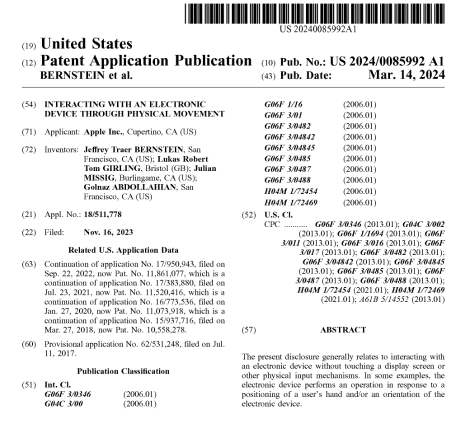 IT之家 3 月 15 日消息,根据美国商标和专利局(USPTO)3 月 14 日公示的清单,苹果公司获得了一项 Apple Watch 相关技术专利,表明苹果公司正在探索更多的交互手势。