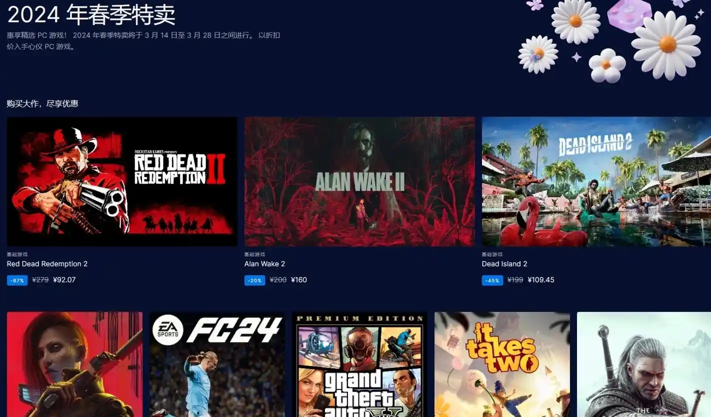 与此同时,另一大游戏平台Steam也于今日开启了2024年春季特卖活动。虽然活动截止时间较早,但同样有多款游戏推出了新史低折扣,其中也包括《战地风云 2042》等热门作品。对于同时关注两个平台的玩家来说,这无疑是一个难以抉择的选择。