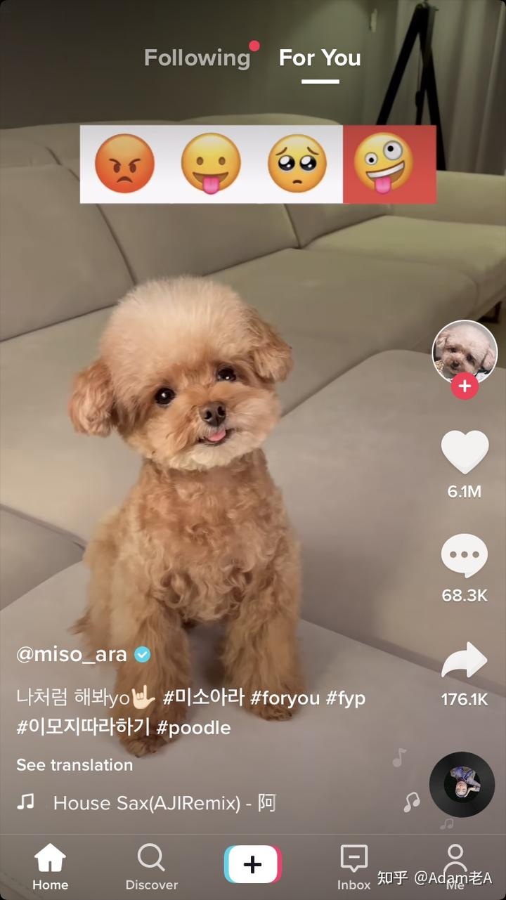 舞蹈类或这配合音乐卡点是视频也深深吸引着不少用户,这里有一个误区,这类视频并非全是全身舞蹈,可以是手势舞、表情舞之类的。因为某音就是靠音乐配舞蹈火起来的音乐类短视频软件,所以海外版某音TK也秉承着这种发展模式,再加上海外版某音TK本身就是年轻用户的聚集地,所以是不是就会有某些舞蹈成为爆款,吸粉无数。