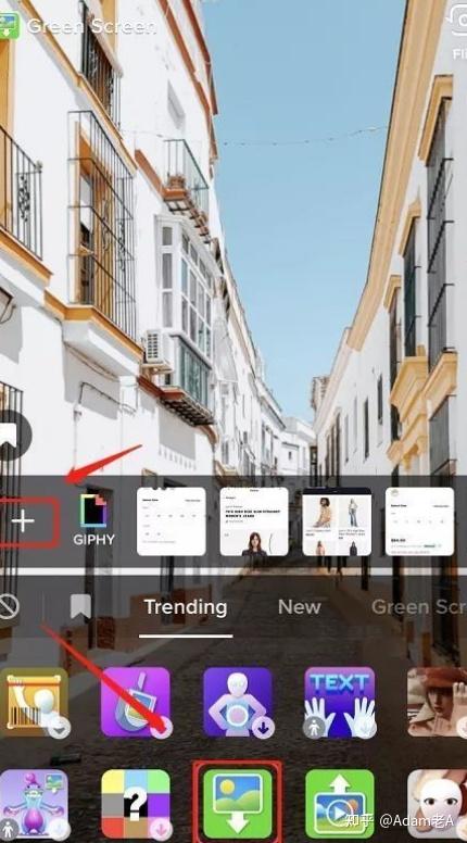 打开海外版某音TK →点击屏幕底部中央的“ +” 号 →点击屏幕左下角的效果按钮 →选择绿幕,它显示带有向下箭头的照片图像 →点击弹出的图像选择器旁边的 “+” 号以查看相册 →点击你要使用的照片 →录制、编辑和发布你的视频。