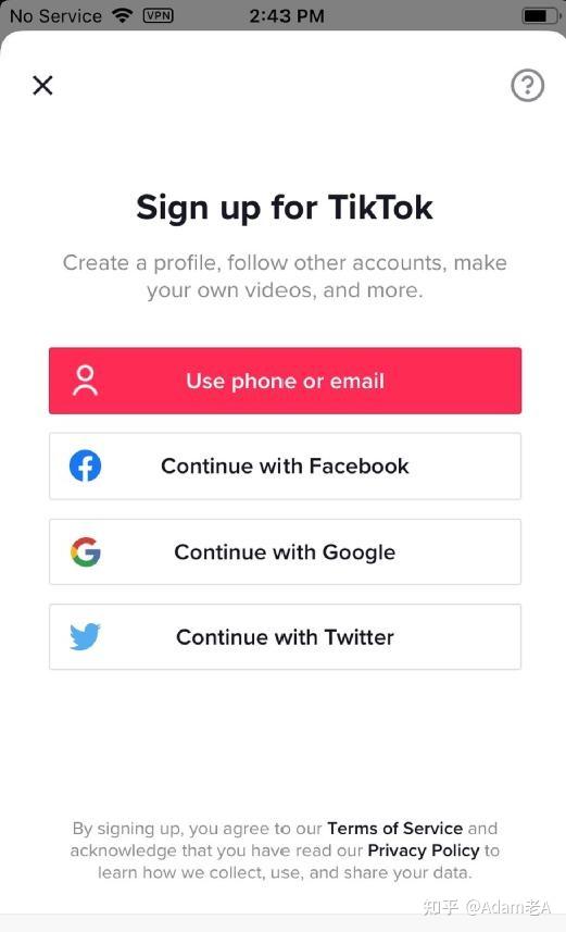 目前海外版某音TK账号目前支持的注册方式有三种: