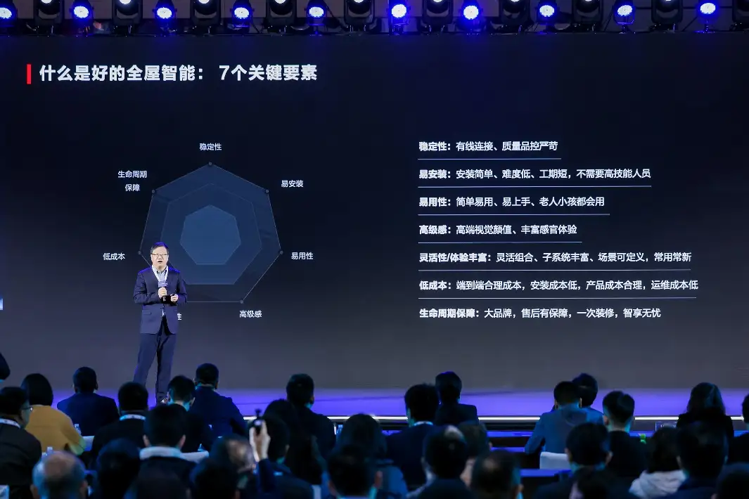 在空间智能化加速,以及地产行业急切需要新的增长点的当下,如何定义“好房子”、定义什么是“好的全屋智能”,成为亟待解决的标准及课题。基于此,邵洋在论坛上总结了华为全屋智能着力打造的七大关键特点,即稳定性、易安装、易用性、高级感、灵活性、低成本、生命周期有保障。