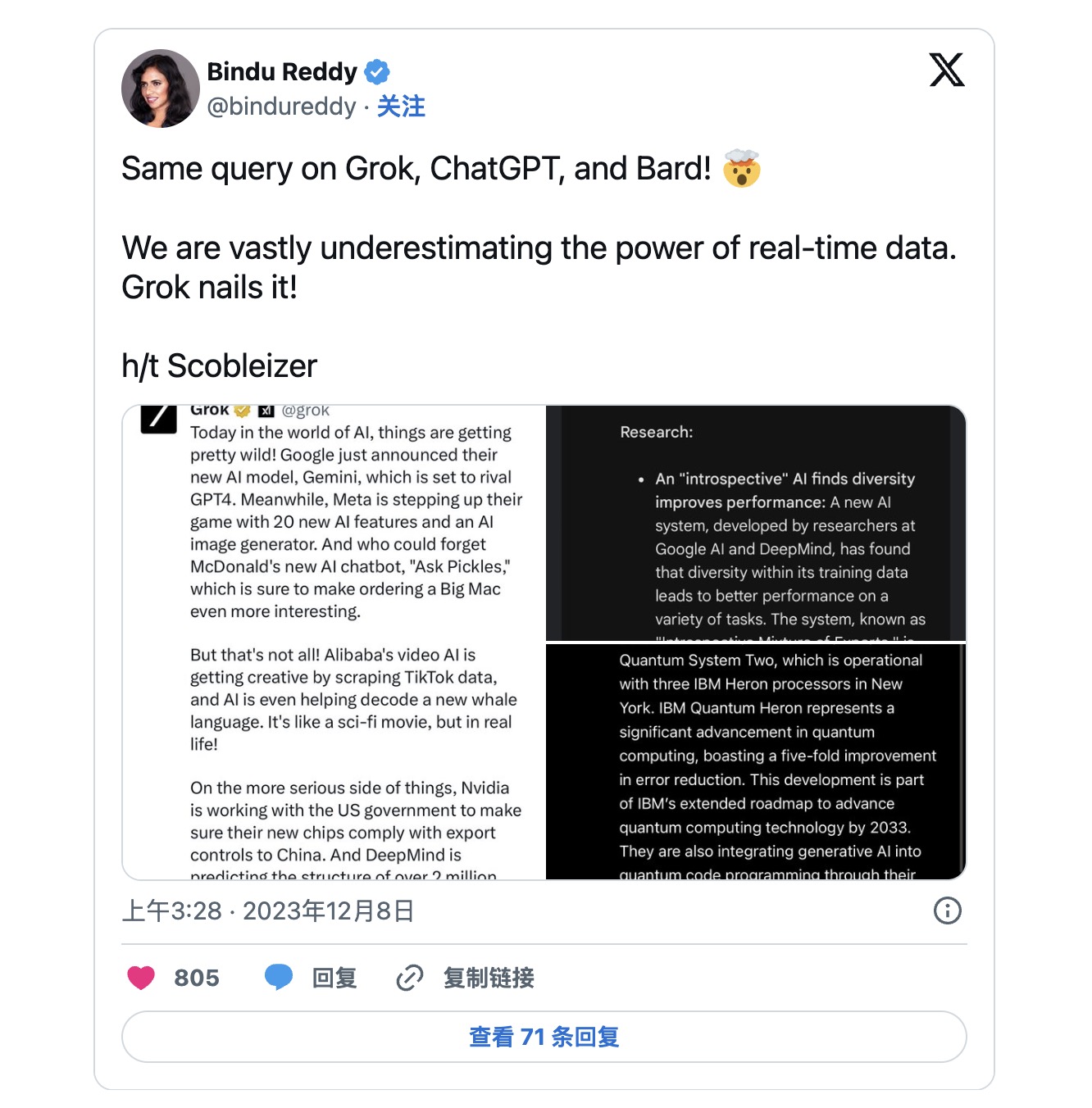 Grok是由马斯克Elon Musk的AI初创公司xAI开发的聊天机器人,最近正式在X上发布。Grok采用了类似于ChatGPT和Google Bard的AI模型的知识库,以对话的方式回答用户问题。与其他聊天机器人不同,Grok可以从X上的帖子中获取实时数据,并据此提供最新信息。