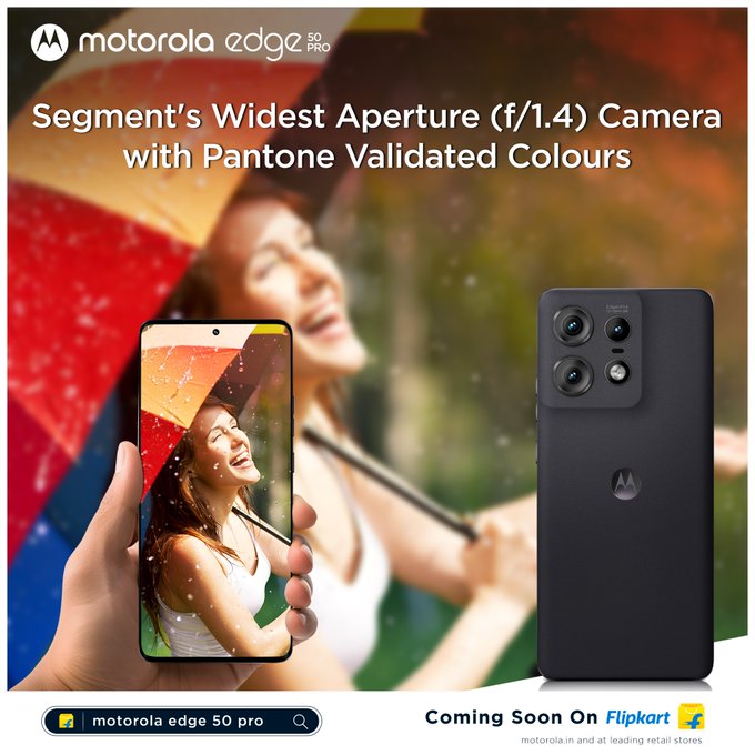 虽然官方尚未公布太多关于新机摄像头的细节信息,但可以确认的是,Edge 50 Pro 将采用后置三摄系统,主摄为 50MP,并通过了彩通认证。除此之外,爆料人 Abhishek Yadav 透露该机还将配备一枚 13MP 的超广角镜头。