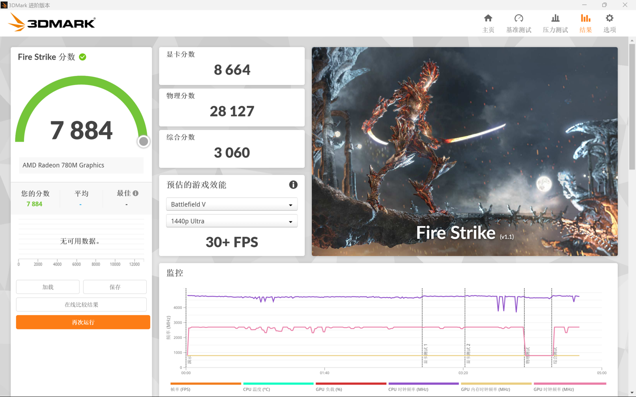 而在代表 DX11 游戏性能的 3D Mark Fire Strike 测试中,小新 Pro14 2024 AI 锐龙版的显卡分数来到了 8664 分,物理分数也有 28127 分,同样在测过的历史同处理器机型中名列前茅。在 7500MHz 内存频率下测试时,显卡分数再次提升了 600 多,综合分也提升了不少。那可能有人要问了,为什么它的 CPU 和核显的理论性能比一些游戏本还要高呢?