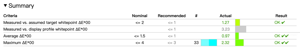 而在色准方面,原生色域下的屏幕色准表现也很不错,IT之家实测其平均 Delta E 为 0.97,最大 Delta 为 2.32,用来做专业设计需求也是很 OK 的。