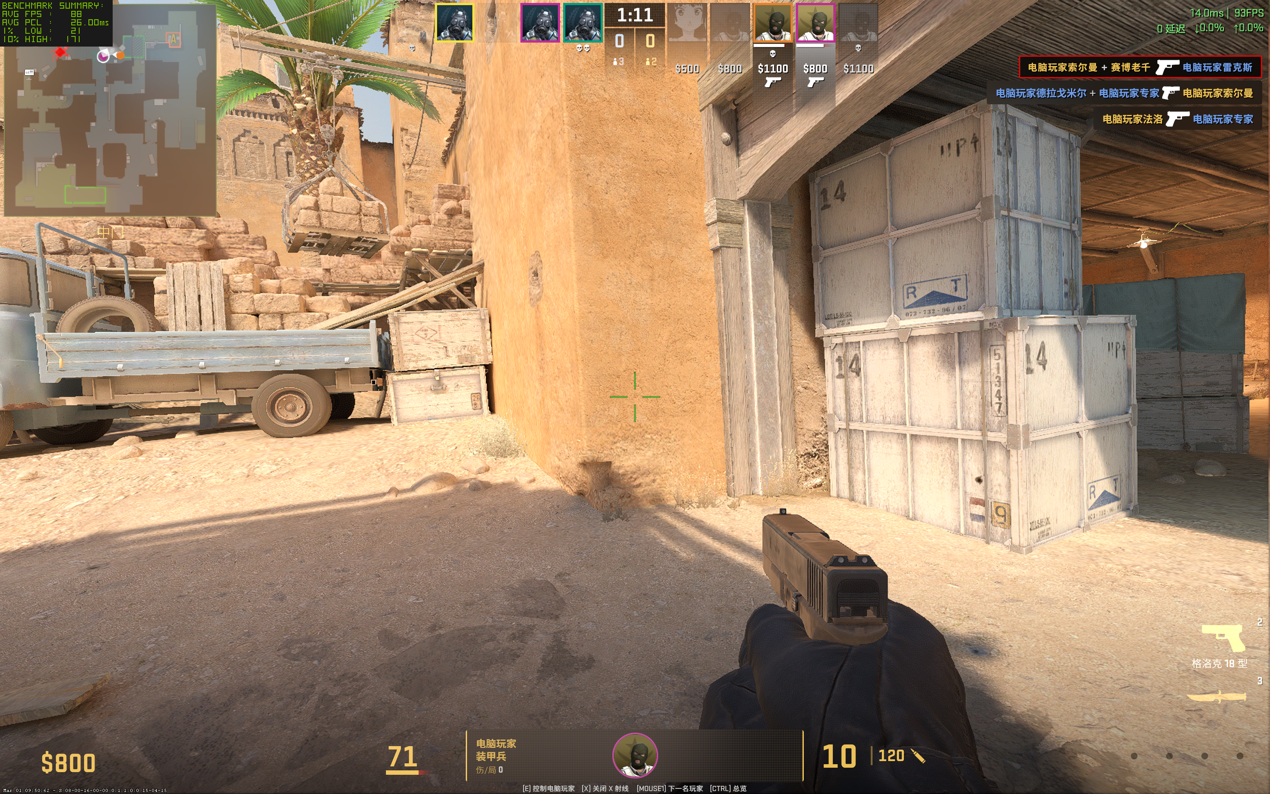 第一款老规矩还是 Steam 上最火爆的在线竞技游戏《CS2》,我们直接上难度,进入游戏后选择 2.8K 分辨率,低画质预设,此时的平均帧数可以达到 88 帧,OLED 屏配合高刷新率,游戏体验非常不错。