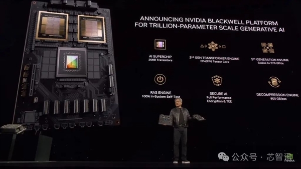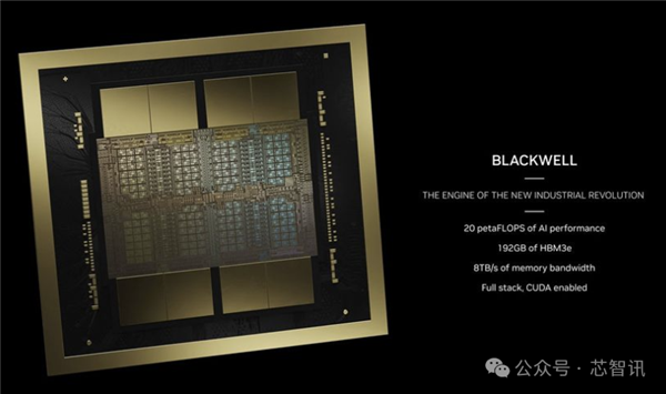 在新的FP4格式上更可达到40 PFlops,是前一代Hopper构架GPU运算性能8 PFlops的5倍。