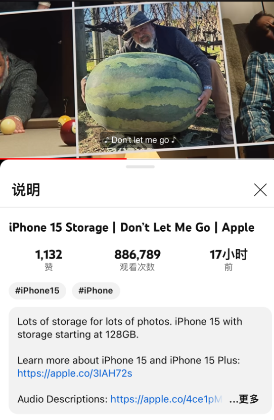快科技3月19日消息,今日,苹果发布主题为“iPhone 15 Storage | Don’t Let Me Go”的宣传视频。