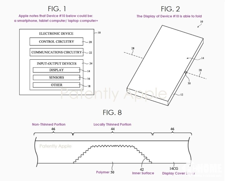 苹果方面为此打造了很多专利技术,在已经曝光的一份专利上,苹果通过在超薄玻璃上蚀刻一个凹槽,并用柔性聚合物覆盖其中,从而让屏幕的折叠更为顺滑,而且在折痕上也不太明显。
