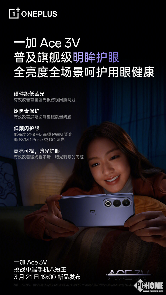 3月20日,一加官微爆料称,一加Ace 3V四大维度,技术攻坚,把旗舰级护眼屏幕普及到底,首发定制护眼发光材料;眼科专家全程指导研发;全场景无死角护眼调校;AI个性化匹配用户用屏习惯。