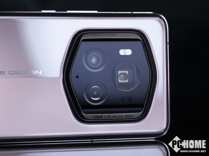 镜头部分采用更显沉稳大气的六边形矩阵,边缘为曲面设计,与机身之间具有保护圈和“火山口”延伸进行过渡,有效减缓了视觉凸起感,并赋予该区域有序的层次感。