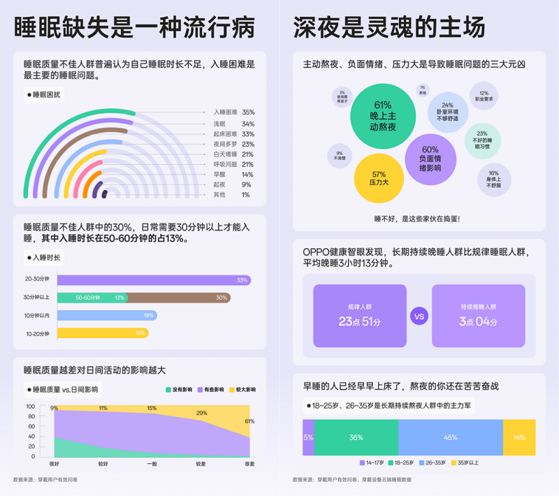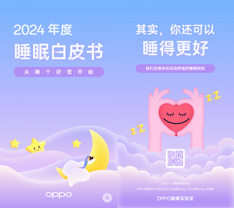 3月21日是世界睡眠日,OPPO今日发布《2024年度睡眠白皮书》(以下简称“白皮书”),多维度分析各年龄段群体的睡眠健康状况,并提出了改善睡眠的科学建议。此外,OPPO 还宣布即将在健康研究 APP 中上线全新的睡眠健康研究服务,基于领先的失眠认知行为疗法(CBT-I)与失眠正念疗法(MBT-I)原则,以科学的个性化睡眠方案助力用户在28天以内改善睡眠状况。即将发布的全新一代 OPPO Watch X 也将集成下一代健康智眼与鼾症风险评估等多项睡眠健康功能,提供准确、高效的睡眠改善方案。