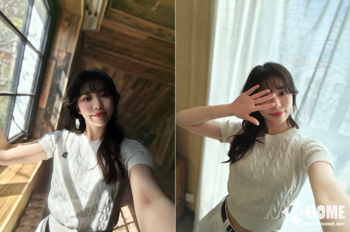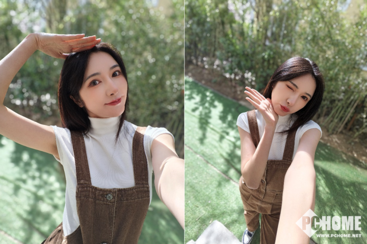 前置搭载了3200万+3200万像素双主摄,除了美颜加持外,也传承了“大师人像”的美感。26mm焦段下,更适合一个人自拍,在保证个人特色的同时更加自然,模特和背景的过渡也比较自然。两个镜头配合进行景深测算,层次感更丰富。
