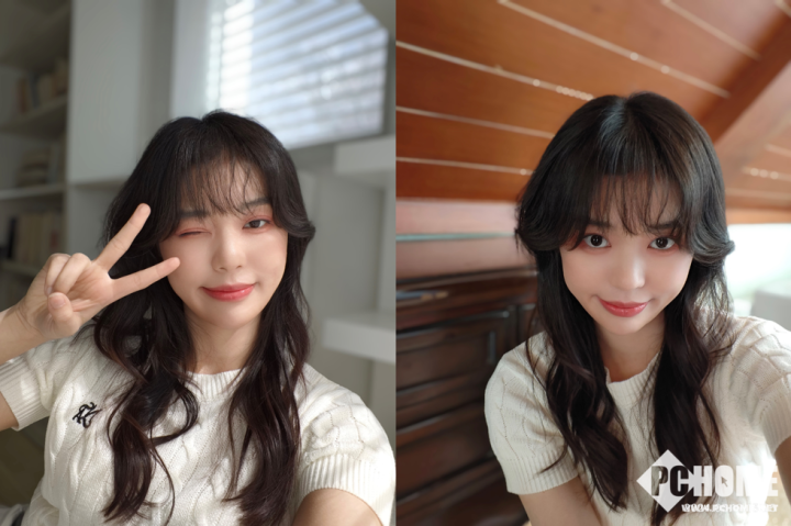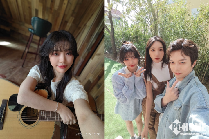 100°超广角自拍玩法更多,不仅能纳入更多景色,还很适合多人自拍,并且在AI-GAN美颜的加持下,能够为每个人匹配不一样的美颜效果。男孩儿的美颜更加英气阳光,女孩儿的美颜效果更加柔美水润。能看到不同模特的个人特征都得到保留,比如不同的笑容纹路、妆容等,没有过分美颜。
