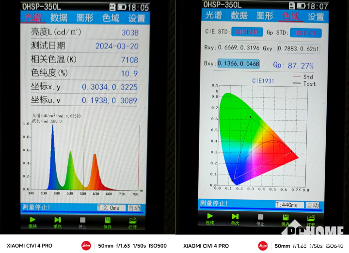 在屏幕素质方面,小米Civi 4 Pro采用了和小米14系列同款的C8发光材料,实测小米Civi 4 Pro能达到3038nit峰值亮度;屏幕拥有2750×1236分辨率、460PPI像素密度,在色彩方面,实测小米Civi 4 Pro能达到87.27% P3广色域,满足日常的追剧需求没有问题,清晰度、色彩可以满足日常观看。此外,小米Civi 4 Pro还支持120Hz高刷,滑动屏幕不卡顿,更为顺畅。