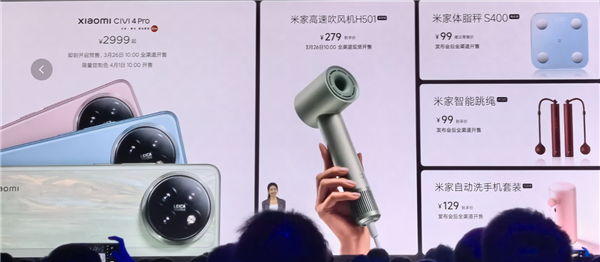 快科技3月21日消息,今天下午小米举办小米Civi 4 Pro发布会,共带来了五款新品。