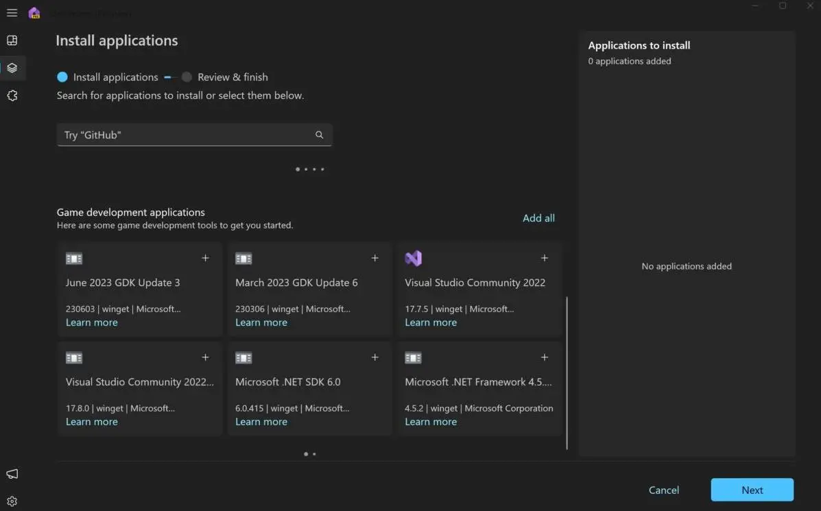 据了解,此次更新的Dev Home应用版本号为0.12,不仅引入了全新的“Environments”页面,更重磅推出了Microsoft Game Dev扩展程序。这一扩展程序的推出,标志着微软在游戏开发领域的又一次重大突破。