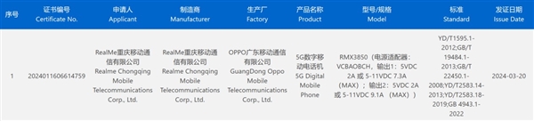 近日,一款型号为RMX3850的 realme 手机通过了国家3C认证,据猜测应该为即将发布的真我GTNeo6SE手机。