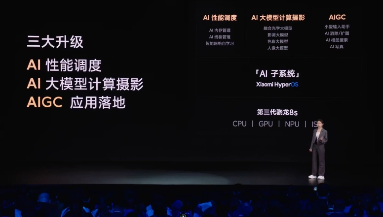 IT之家 3 月 21 日消息,正在举行的小米新品发布会上,小米宣布 Civi 4 Pro 手机首发骁龙 8s Gen 3 处理器,AI 能力迎来三大升级。