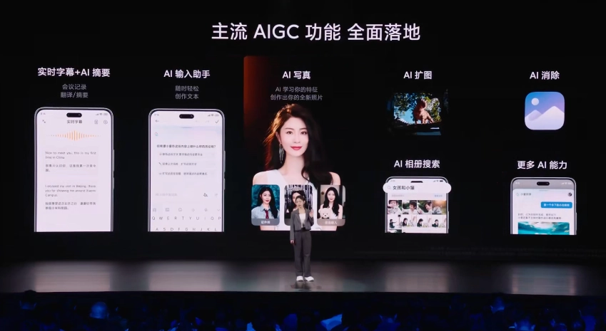 主流 AIGC 方面,新机支持实时字幕 + AI 摘要、AI 输入助手、AI 写真、AI 扩图、AI 消除、AI 相册搜索等。