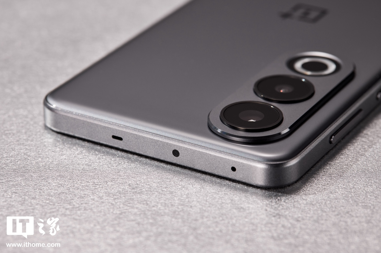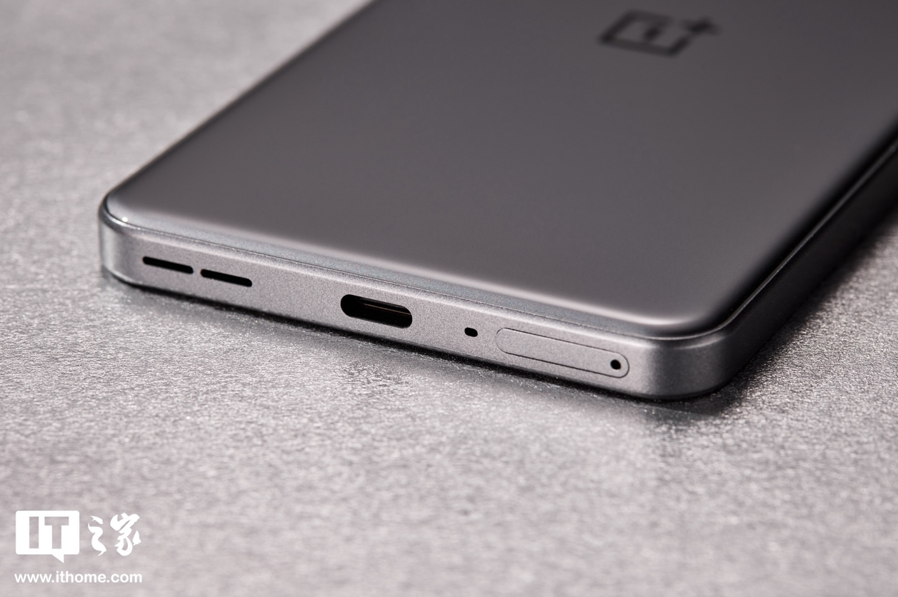 SIM 卡槽位于一加 Ace 3V 机身底部,扬声器开孔为两条“一”字形开孔。