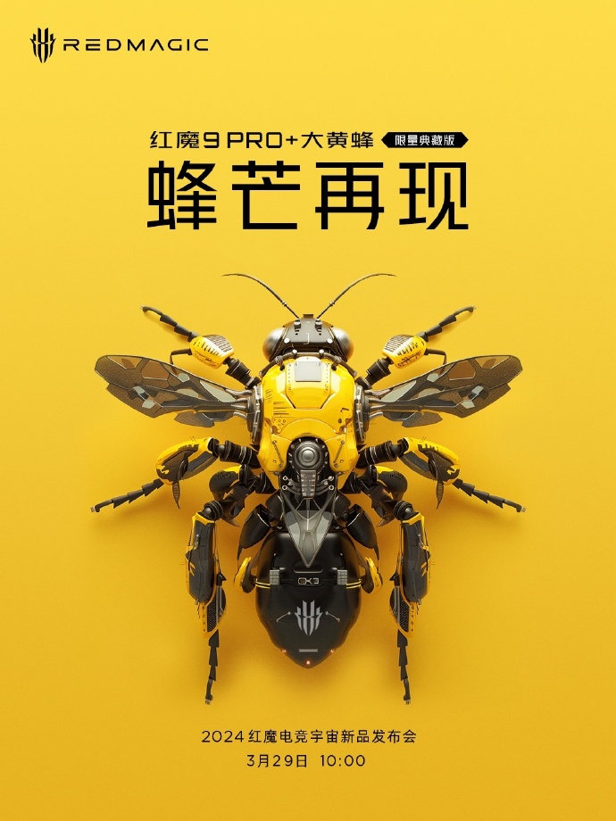 IT之家 3 月 25 日消息,红魔游戏手机今日宣布再次联名变形金刚,红魔 9 Pro + 大黄蜂限量版手机 3 月 29 日 10:00 发布。