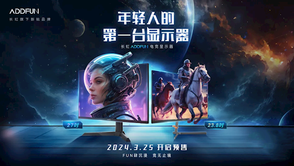 快科技3月25日消息,长虹今天发布了ADDFUN“星舰”电竞显示器,号称是专为年轻人打造的第一台电竞显示器。