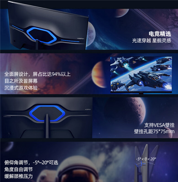 在外观设计上,该系列显示器的设计灵感源自于宇宙的深邃与星云的斑斓,将星际科幻元素与电竞巧妙地进行了融合。
