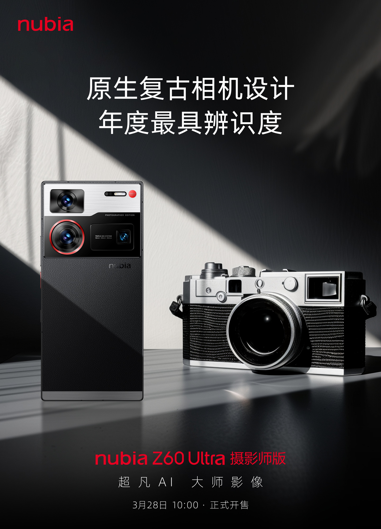 IT之家 3 月 26 日消息,努比亚 Z60 Ultra 摄影师版手机现已上架京东开启预约,将于 3 月 28 日 10 点开售,定价暂未公布。