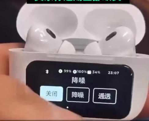 从曝光的视频来看,该无线耳机在充电仓上配备了一块触控屏,可左右滑动,可切歌、控制音量、选择降噪模式、调整均衡器等等。