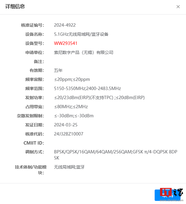 IT之家 3 月 26 日消息,索尼一款型号为“ WW293541”的相机新品已经通过了工信部无线电核准,指出 5.1 GHz / 2.4 GHz 无线网络和蓝牙。
