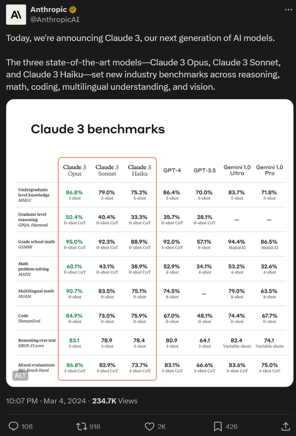 刚刚,OpenAI 最大的竞争对手 Anthropic 发布了新一代 AI 大模型系列 ——Claude 3。