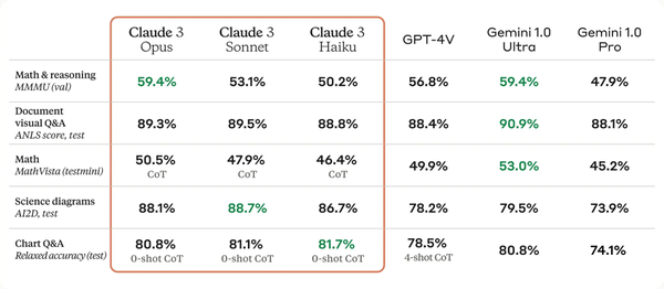 Anthropic 表示,它们的一些客户 50% 以上的知识库以各种数据格式进行编程,例如 PDF、流程图或演示幻灯片。因此,新模型强大的视觉能力非常有帮助。