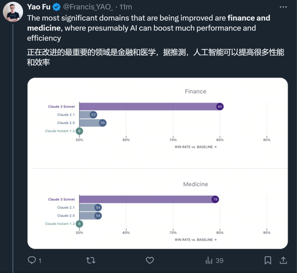 与 Claude 之前的模型相比,改进比较大的领域是金融和医学。