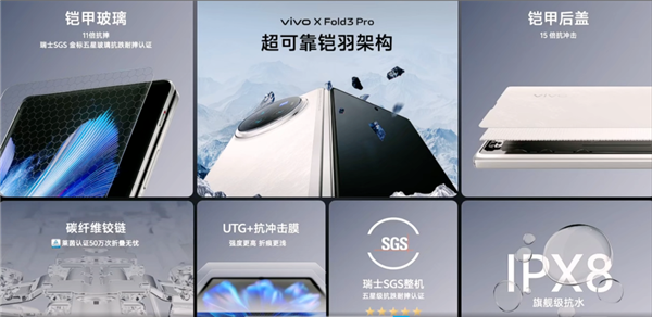 简单来说,这次 vivo X Fold3 Pro 做到了三点:耐摔、耐磨、耐水。