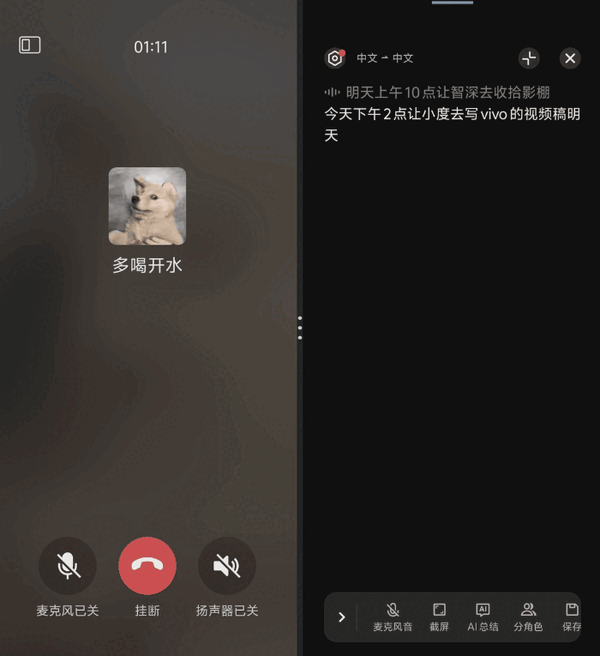 而小V帮记的话,则是能支持语音转文字记录,智能摘要总结,并且还能实时翻译和双语显示,可以说是打工人自己的 “ 赛博秘书 ”。