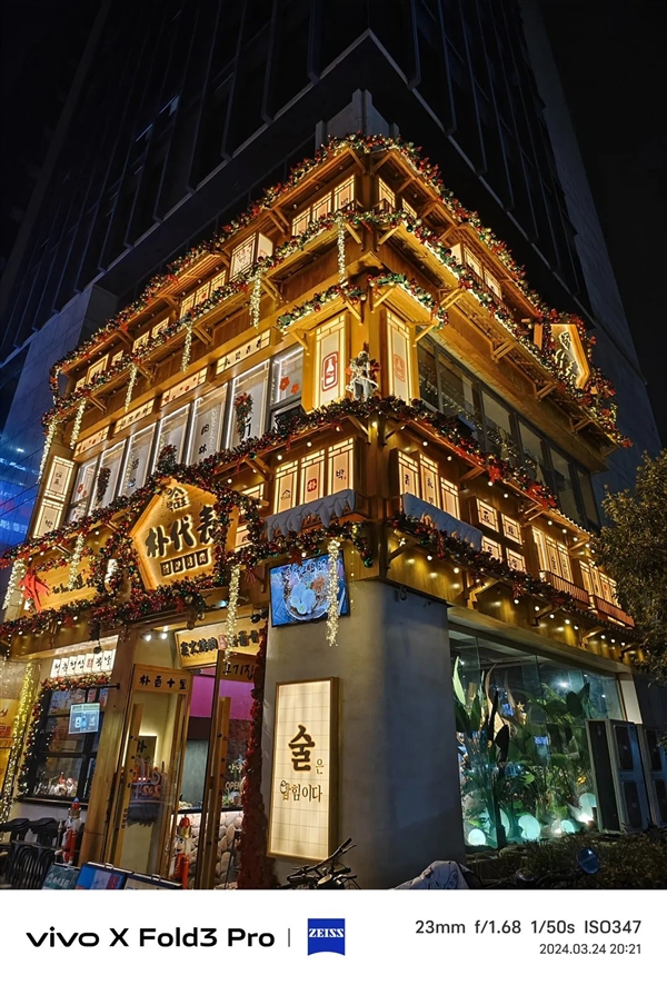 在夜晚场景下,由于 OV64B 本身的底够大( 1/2 英寸 ),再加上蓝厂的夜景算法以及蔡司 T* 镀膜,使得 vivo X Fold3 Pro 也有不错的拍摄效果。