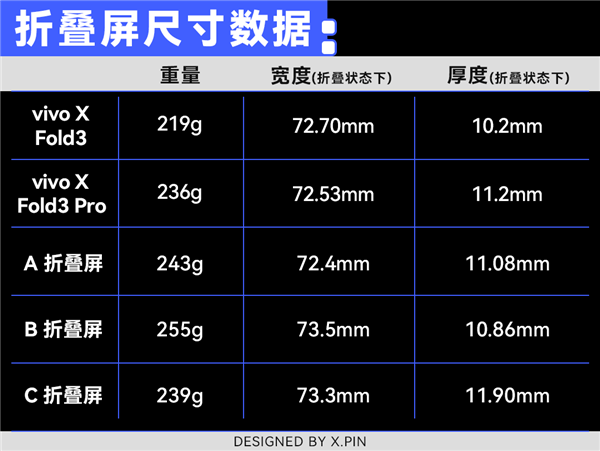这是什么概念呢,大家看下面这组主流折叠屏的身材数据就明白了。