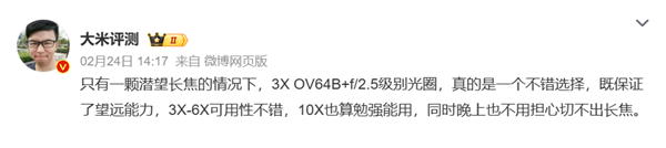 64MP 的 OV64B 3X 潜望长焦 + f/2.57 的光圈,确实是一个不错的长焦方案——原生 3X 变焦下画质管够, 3X 到 6X 区间因为像素够高,裁切后画质也算可用。