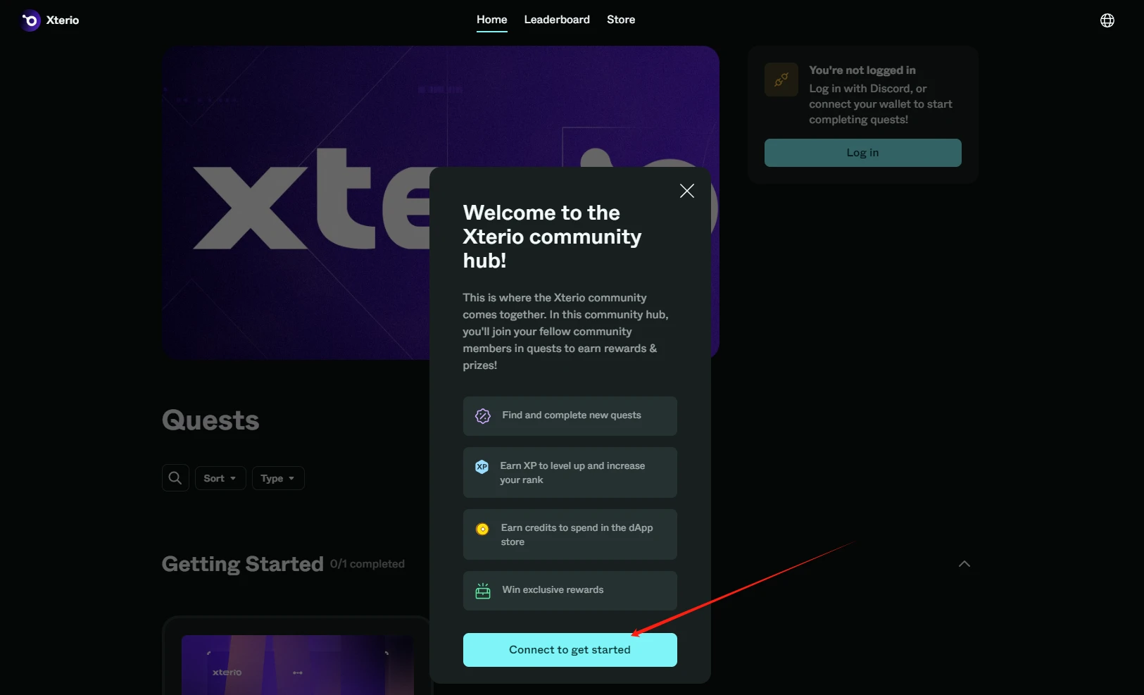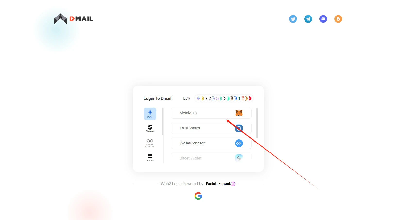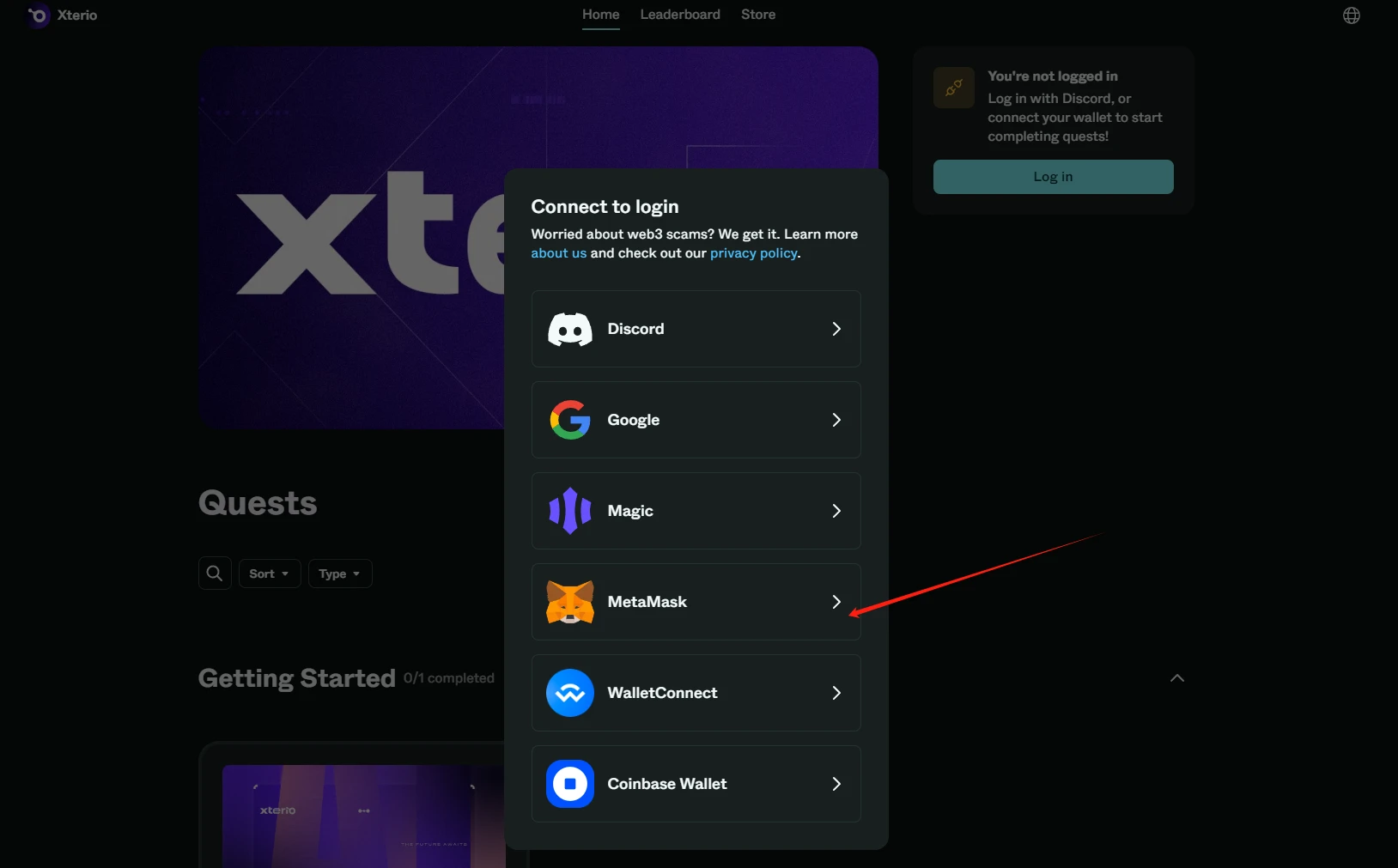 STEP 1. 点击“Connect to get started”后,选择 MetaMask 钱包登录
