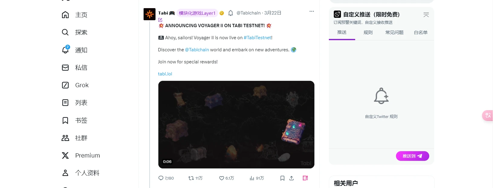3 月 22 日,模块化游戏 Layer 1 Tabi 在测试网上线新活动 Voyager II。此次活动旨在延续此前 Voyager I 的成果,为用户提供更大规模的奖励。此外,参与过 Voyager I 活动的 OG 用户上线即可领取不同等级的宝箱奖励。在 Voyager II 活动中,用户可通过完成活动任务获得 Tabi 测试网的各类奖励,并积累后续空投积分。